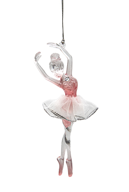 ნაძვის ხის სათამაშო - გამჭვირვალე ბალერინა, ვარდისფერი კაბით.