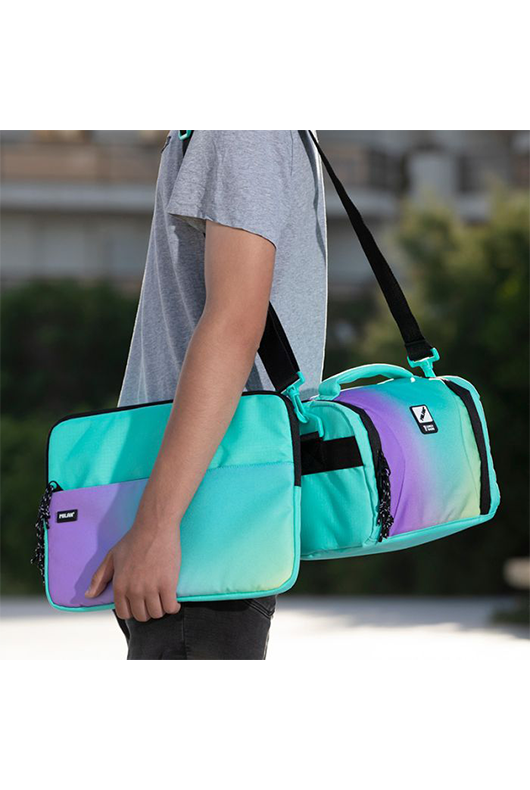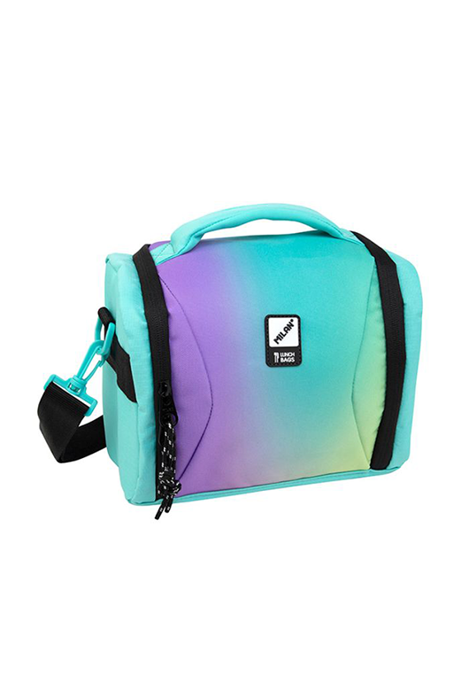 დიდი ტევადობის საკვების სატარებელი იზოთერმული ჩანთა. მზის ჩასვლის სერია, ფირუზისფერი ფერი. მზის ჩასვლით შთაგონებული გრადიენტური ფერების კომბინაცია, რომელსაც ახლავს შავი და თეთრი დეტალები. Zipper pulls ერთად თოკი. თბოსაიზოლაციო ინტერიერი (ცხელი/ცივი) საკვების უკეთ შესანარჩუნებლად.ქსოვილის შემადგენლობა: პოლიესტერი გარე და იზოთერმული.