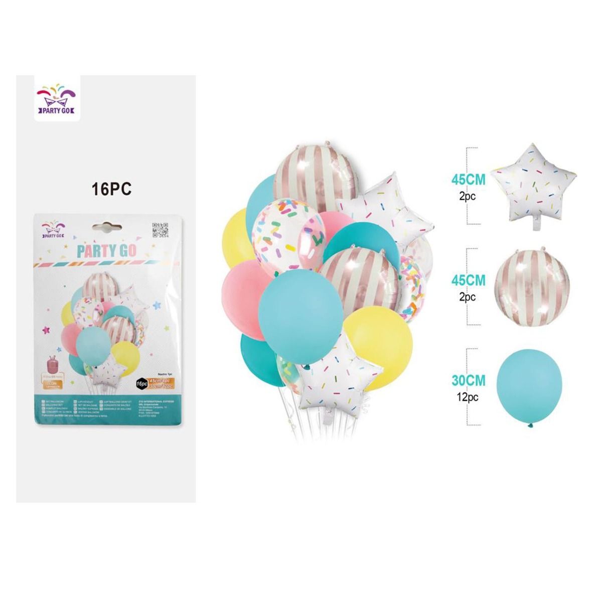 სადღესასწაულო დეკორაცია - ბუშტები დონატის ფერებში, 16 ცალიანი