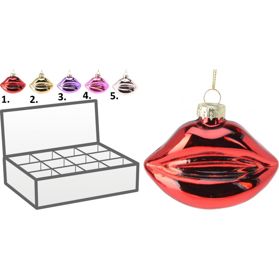 ტუჩები მინის - მოსართავი ფიგურა, 5ც. ასორტში.სხვადასხვა ფერი