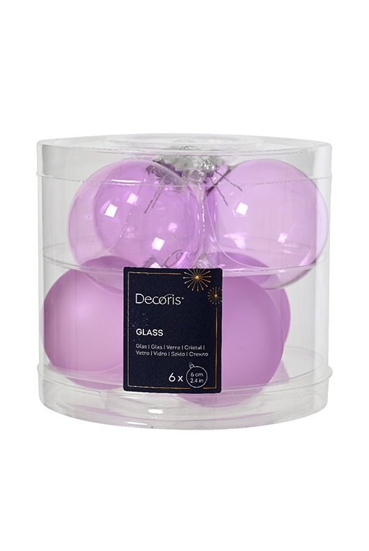 ბურთები 6 ცალიანი - მოსართავი ფიგურა მინის, D.6სმ, იასამნისფერი