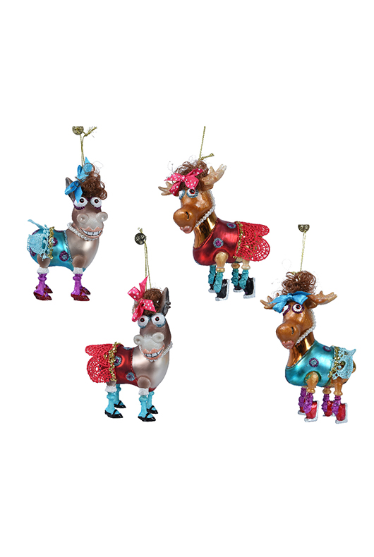 გაპრანჭული ირემი - მოსართავი ფიგურები მინის, ზომა : L.5.3xW.8.8xH.13სმ, 4ც.ასორტში
