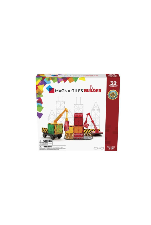 ასაწყობი კონსტრუქტორი მაგნიტური ფიგურებით და ამწით 32 ნაწილი