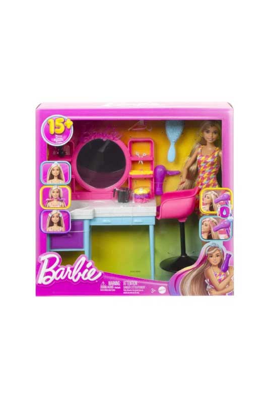 Barbie - თოჯინა და სილამაზის სალონის სათამაშო ნაკრები აქსესუარებით