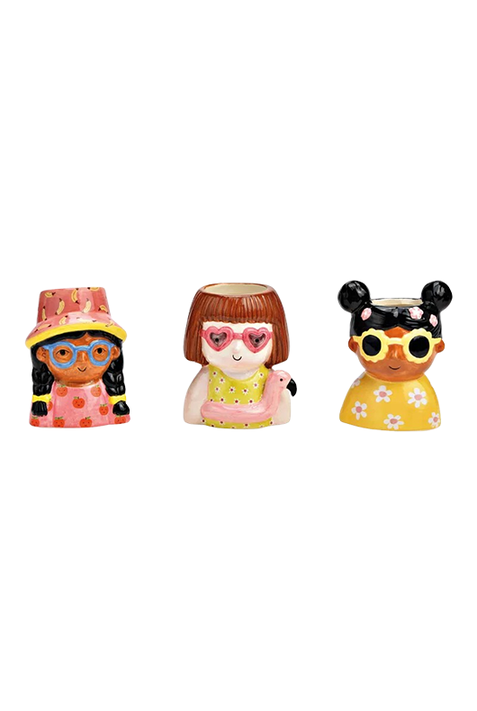 კერამიკის საყვავილე გოგონას ფორმის 3 დიზაინი.