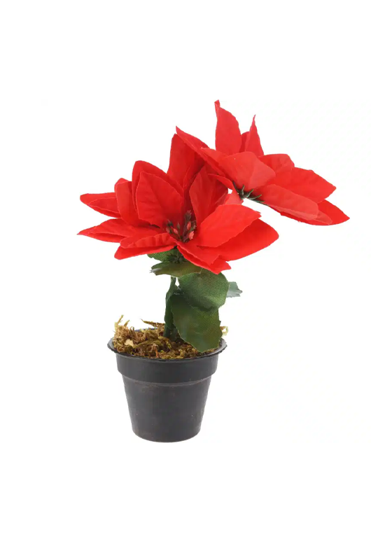 ყვავილი წითელი საშობაო შავ ქოთანში