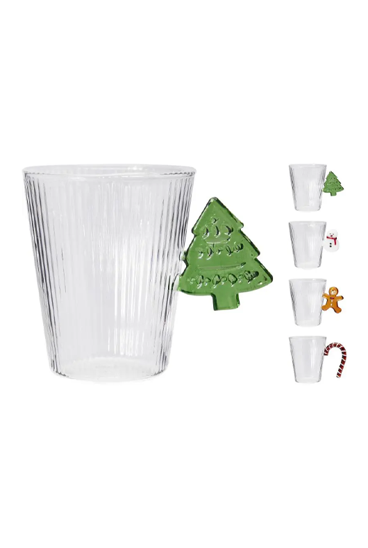ჭიქა მინის ტალღოვანი 4დიზაინის სახელურით 13*8.5*10სმ 4ც.