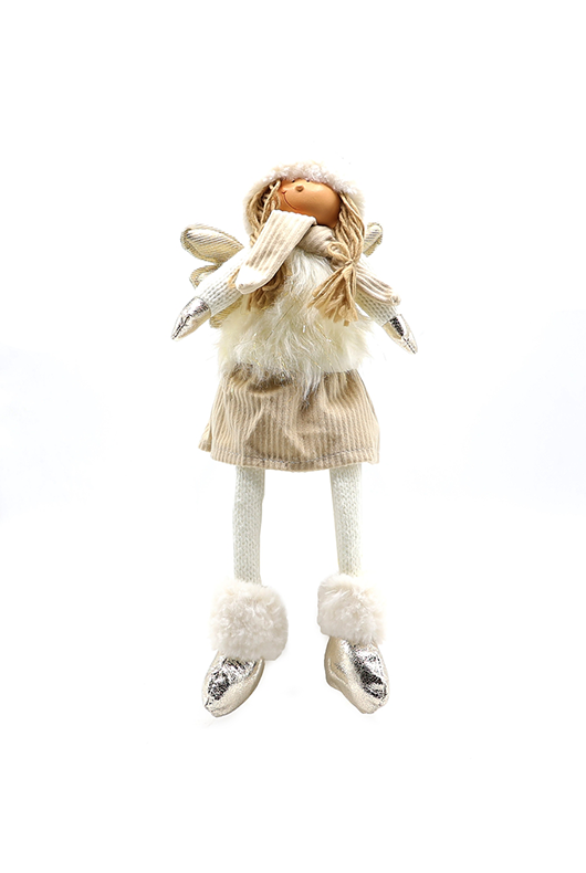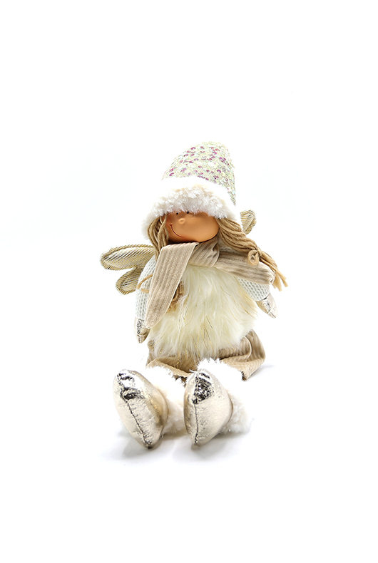 გოგონა ანგელოზი დამჯდარი კრემისფერი - ოქროსფერი ბრჭყვიალებით 67სმ Andy