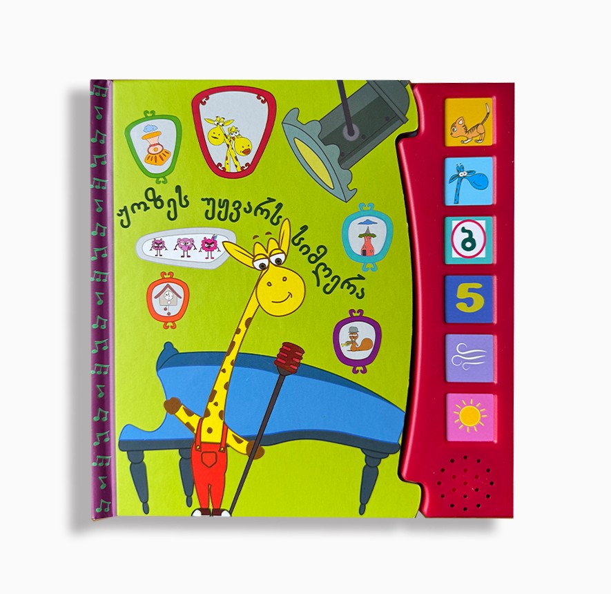 თბილისი - 5 ლარი / რეგიონი - 7.00 ლარი მიწოდება: საახალწლო გრაფიკით, შეკვეთის მიწოდება მოხდება 5 იანვრიდან თბილისი: 2-3 სამუშაო დღე რეგიონები: 4-5 სამუშაო დღეჟირაფი ჟოზე ამჯერად ბავშვებს სიმღერებით ანებივრებს. იმის გარდა, რომ პატარები საყვარელ მელოდიებს მოუსმენენ, სიმღერ-სიმღერით ისწავლიან არითმეტიკას, ფერებს, ანბანს, წელიწადის დროებსა და ბუნებრივ მოვლენებს, ასევე გაარჩევენ მარჯვენასა და მარცხენას. დააჭირე ღილაკს თითი და ჟოზეს განუმეორებელი ხმითა და სიმღერით სწავლის პროცესი კიდევ უფრო სახალისო გახდება.