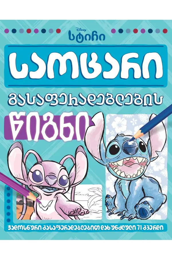 შეუერთდი სტიჩსა და მის მეგობრებს და ერთად იმოგზაურეთ გასაფერადებელი ნახატების ჯადოსნურ სამყაროში! ეს მშვენიერი წიგნი შესანიშნავი გასართობია ხატვისა და გაფერადების მოყვარულთათვის.