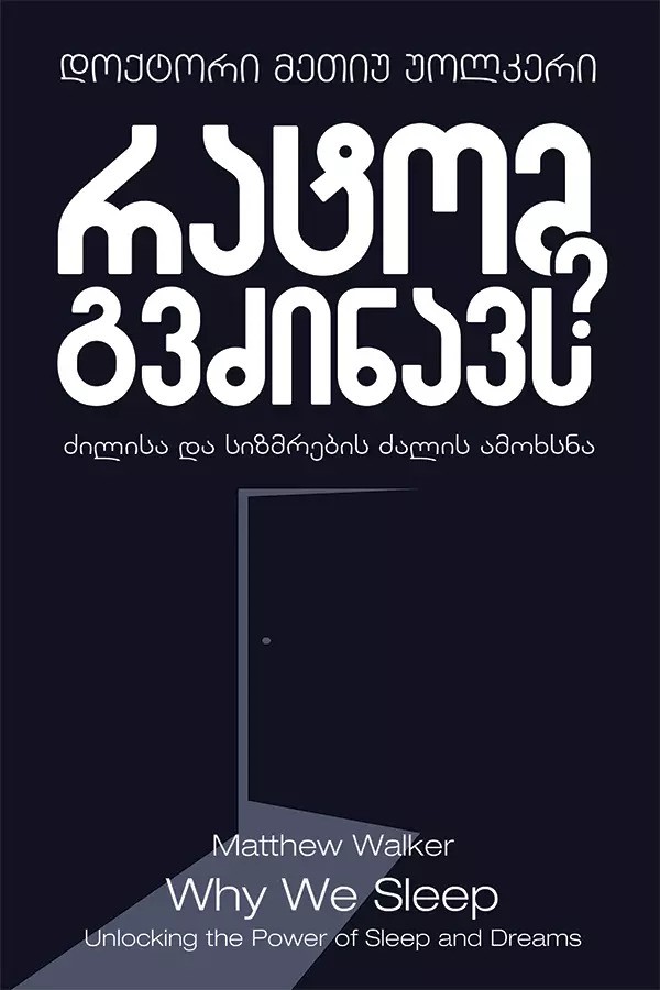 თბილისი - 5 ლარი / რეგიონი - 7.00 ლარი მიწოდება: თბილისი: 2-3 სამუშაო დღე რეგიონები: 4-5 სამუშაო დღეNew York Times-ის ბესტსელერი და საერთაშორისო სენსაცია, ეს მნიშვნელოვანი და შთამაგონებელი წიგნი ძილის სამყაროში მომხიბვლელ მოგზაურობას გვთავაზობს. ძილი ტვინში უამრავ პროცესს უწყობს ხელს — მათ შორის სწავლას, დამახსოვრებასა და ლოგიკური გადაწყვეტილებების მიღებას....