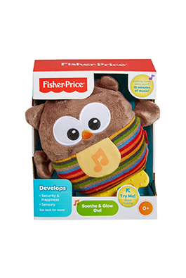 რბილი, მუსიკალური ბუს სათამაშო. ბუ გამოსცემს მელოდეიებს შეხების შემდეგ და უნათებს მუცელი ეხმარება ბავშვს დამშვიდებასა და დაძინებაში.