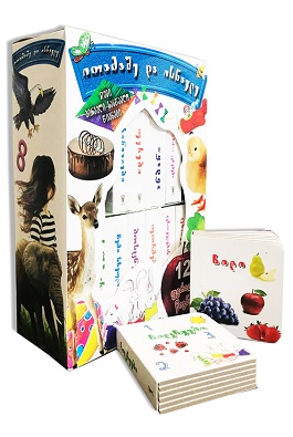 ეს მუყაოს 12 პატარა წიგნი განკუთვნილია 9 თვის ასაკიდან 5 წლამდე ბავშვებისთვის.პატარებს ეხმარება ლექსიკის გამდიდრებასა და ნახატებით საგნების აღქმაში. გარდა ამისა, ბავშვებს შეუძლიათ იგი კუბიკებადაც გამოიყენონ და მშვენიერი სახლები თუ მატარებელი ააგონ. 12-ვე წიგნი დევს მუყაოს ყუთში