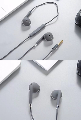 ყურსასმენი გამჭირვალე პლასმასის ქესით ვერცხლისფერი.