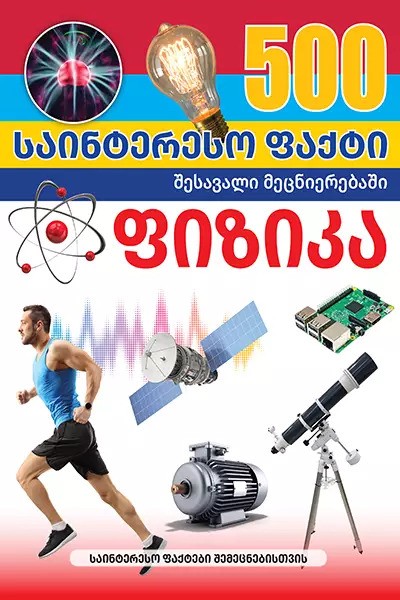 თბილისი - 5 ლარი / რეგიონი - 7.00 ლარი მიწოდება: საახალწლო გრაფიკით, შეკვეთის მიწოდება მოხდება 5 იანვრიდან თბილისი: 2-3 სამუშაო დღე რეგიონები: 4-5 სამუშაო დღეეზიარეთ მეცნიერების საოცარ სამყაროს ამ შესანიშნავად ილუსტრილებული და საინტერესო ფაქტებით სავსე წიგნით - ის თქვენთვის გზამკვლევი იქნება ფიზიკაში! გაეცანით 500 საინტერესო ფაქტს, რომლებიც ყველა ასაკის ბავშვს დააინტერესებს და ბევრ ახალს ასწავლის.